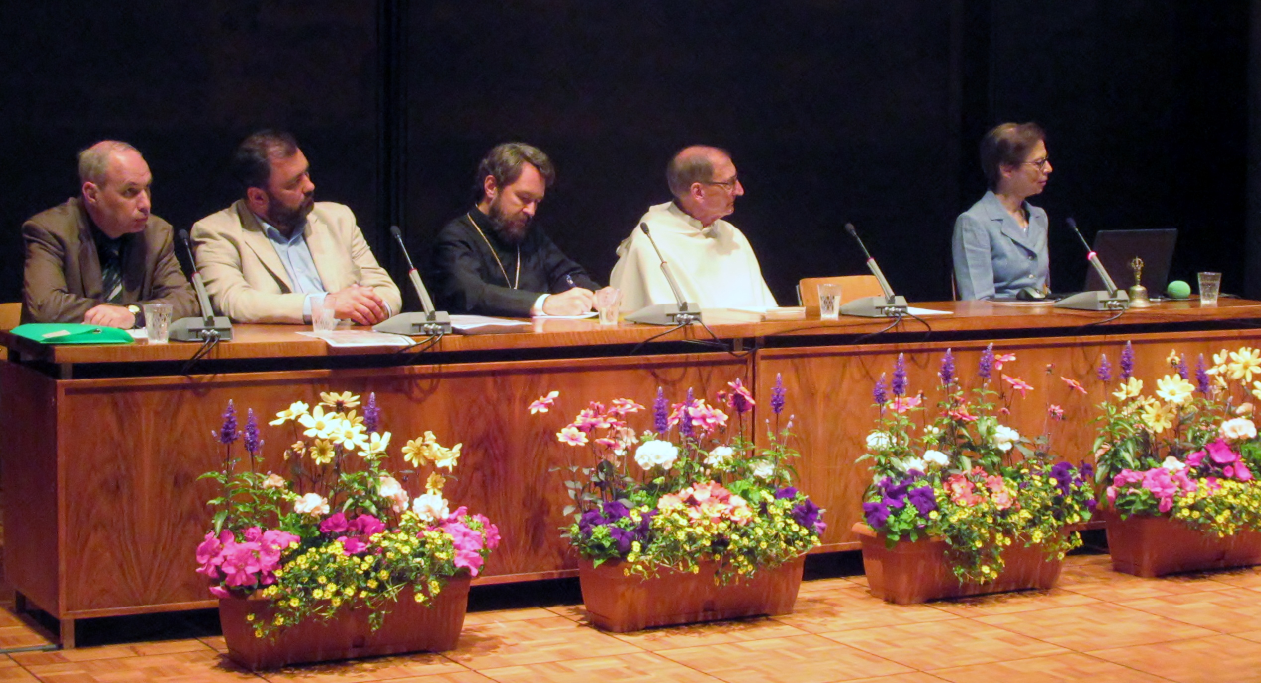 v.l. Prof. Andrei Danilow (Minsk), Dr. Sergii Bortnyk (Kiew), Metr. Hilarion (Alfeyew), P. Prof. Dr. Guido Vergauwen (Fribourg), Prof. Dr. Barbara Hallensleben (Fribourg)